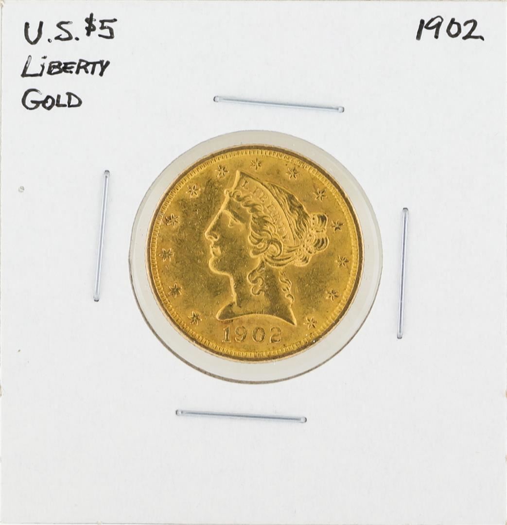 One 1902 $5 Liberty Head Half Eagle Gold Coin.