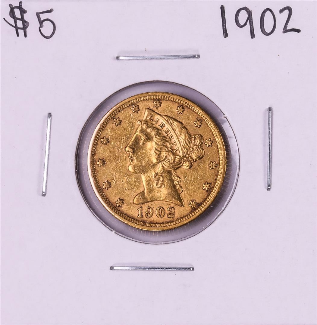 One 1902 $5 Liberty Head Half Eagle Gold Coin.