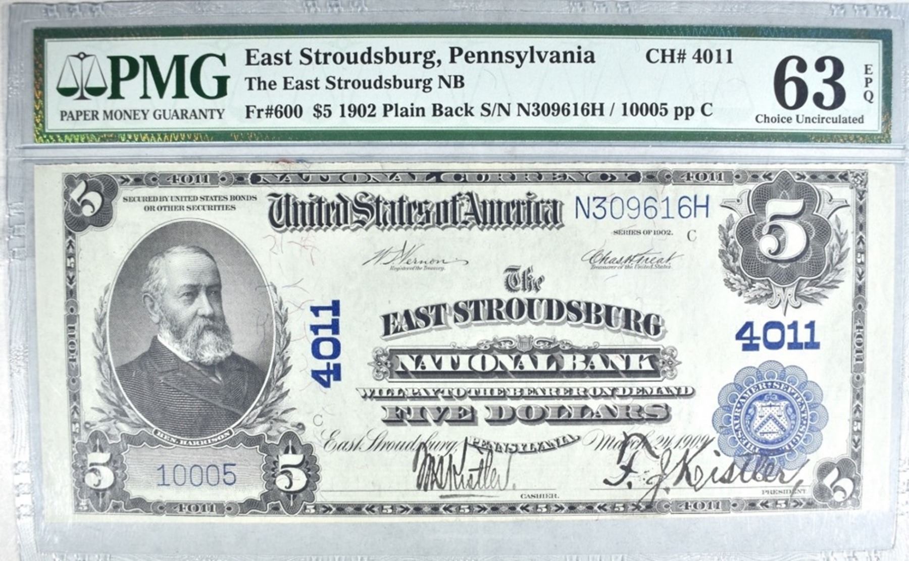 THE EAST STROUDSBURG NATIONAL BANK PENNSYLVANIA ESTIMATE $1500 - $1600.