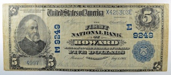1902 $5 NATIONAL FIRST NATIONAL BANK OF HOWARD, PA., FINE, VERY RARE