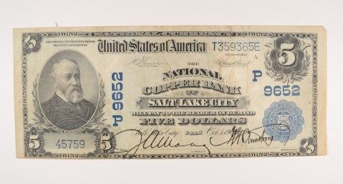 1902 $5 NATIONAL SALT LAKE CITY, UT #9652 FINE