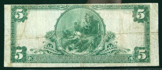 1902, $5 National Bank Note. The First NB, Garden Grove, CA. PCGS Fine 12. . Fr-606. Yet another example from here, this a little lower grade but free of any major distractions.