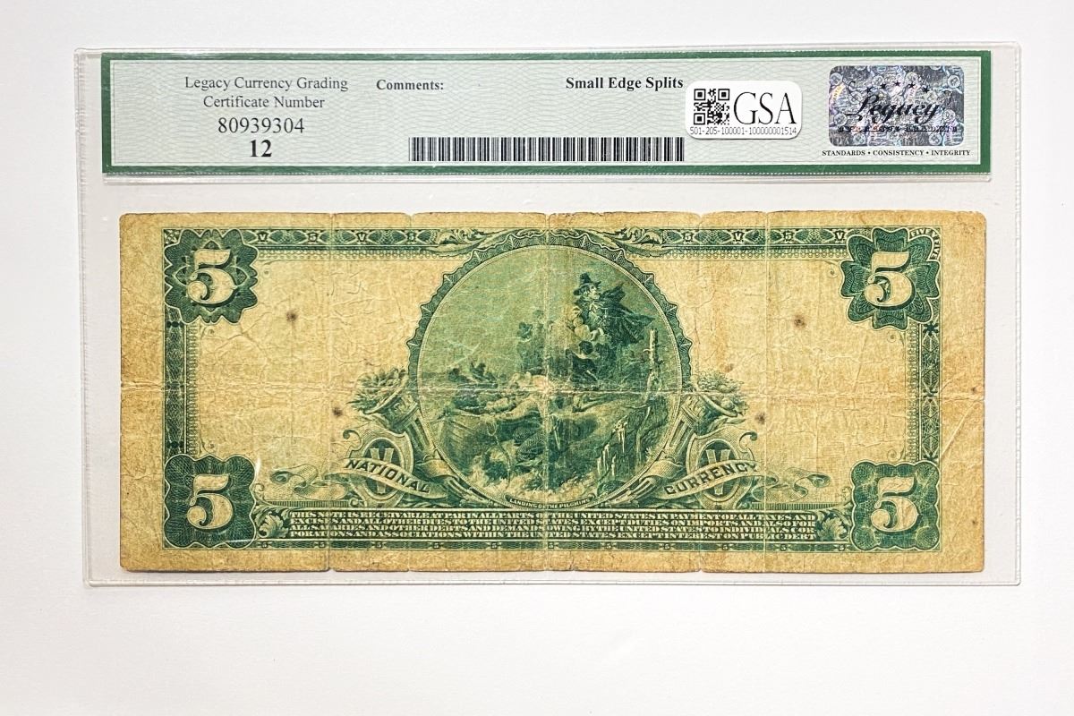 1902 $5 National Bank Note-Tuscaloosa, AL LCG F 12