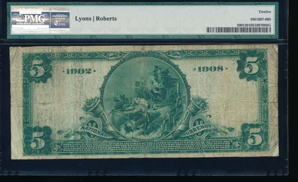 One 1902 $5 National Newark Banking Company Note PMG 12.
