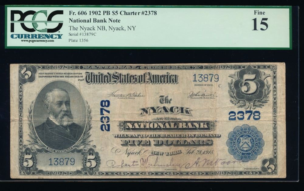 One 1902 $5 Nyack National Bank Note PCGS 15.