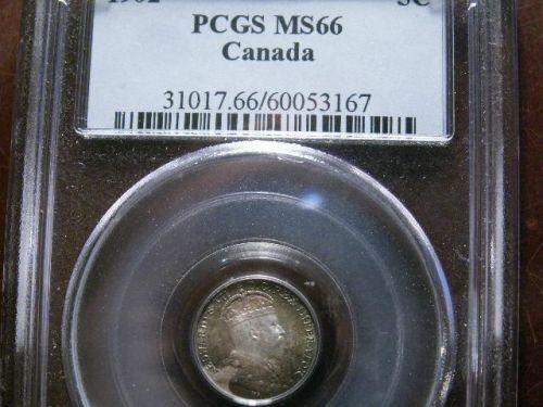 1902 5¢ PCGS MS66 superbly toned. Brilliant at centres and attractively toned all around.