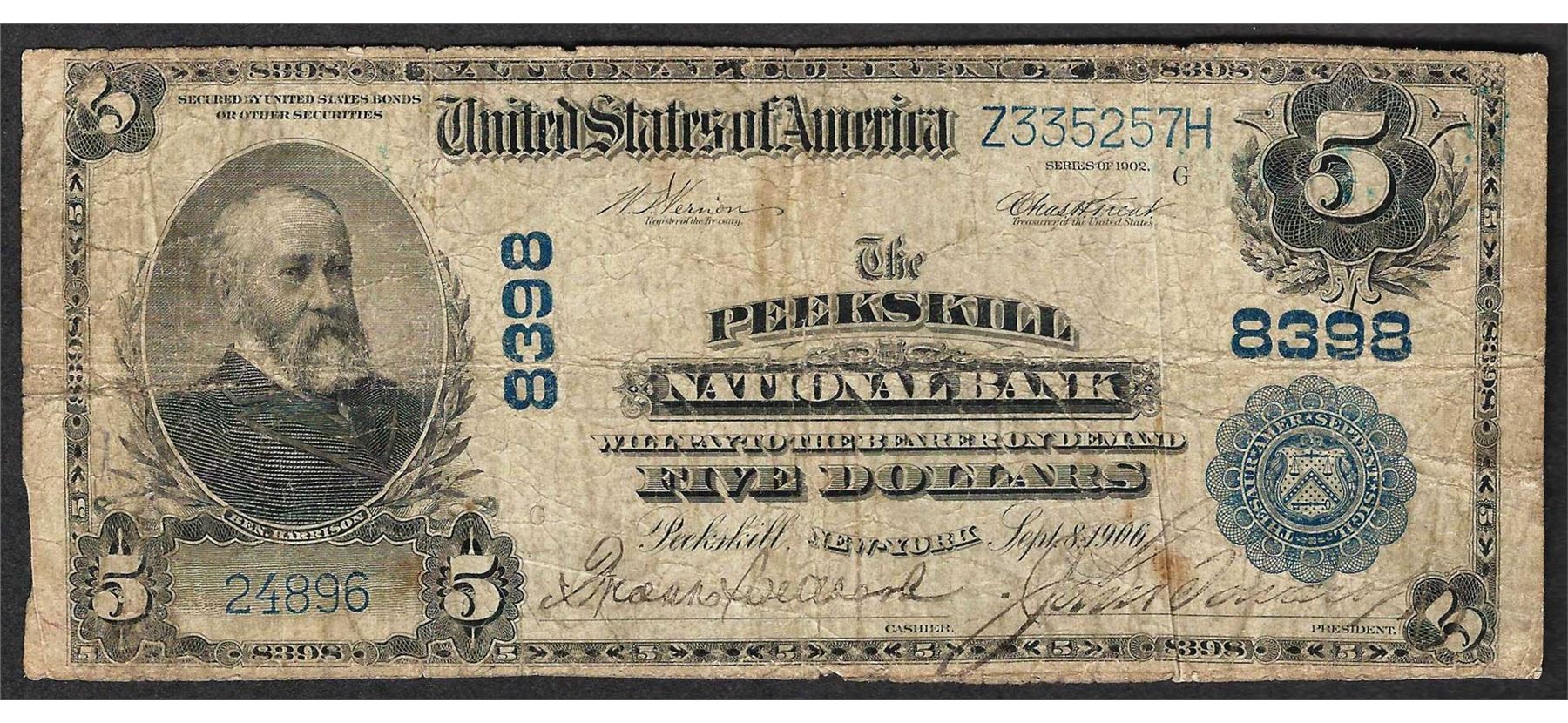 One 1902 $5 The Peekskill National Bank Note CH# 8398.