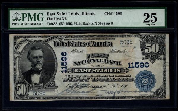 One 1902 $50 East St Louis National Bank Note PMG 25.