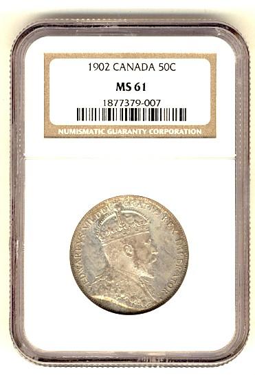 1902 50¢ NGC MS61. Greyish shades with underlying lustre.