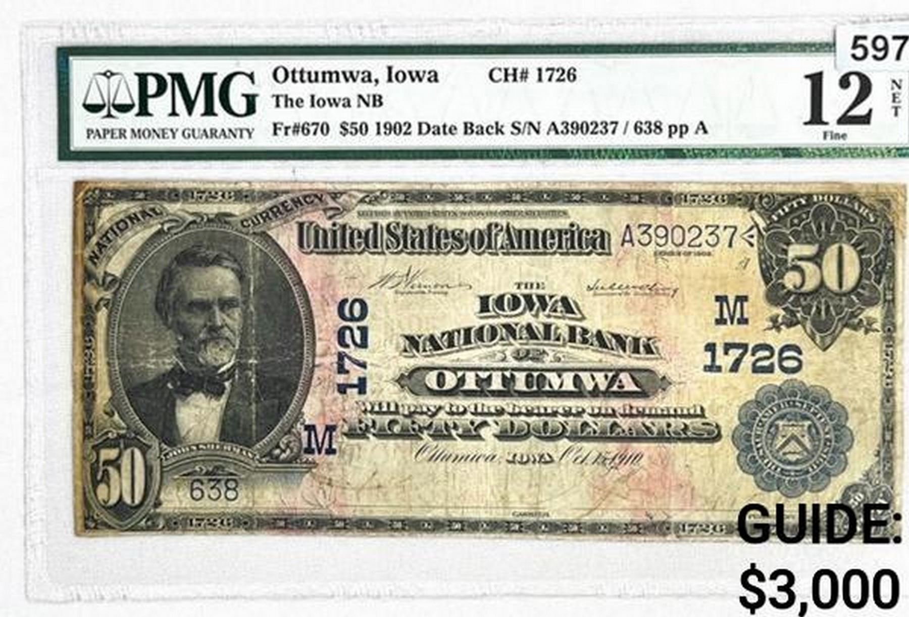 1902 $50 Ottumwa, IA National Bank Note PMG-12F