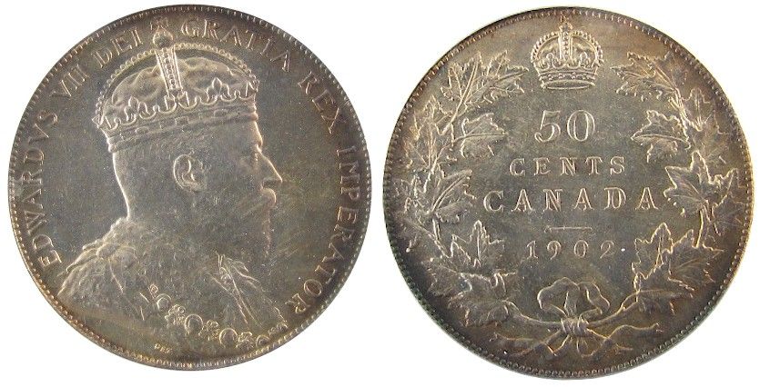 1902 50¢ PCGS/ICCS MS64. Attractive light reddish shades and strong lustre. A lovely example.