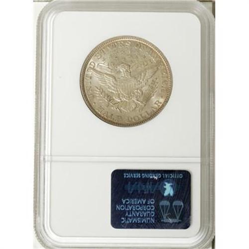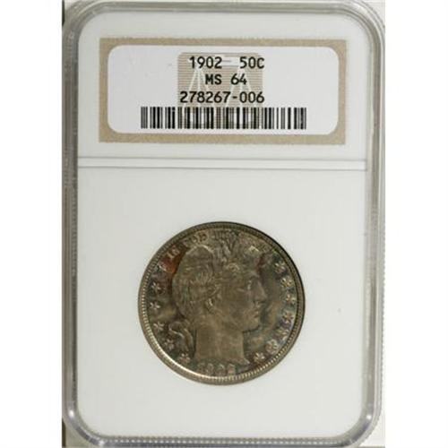 <B>1902 50C MS64 NGC.</B></I> Softly lustrous with pleasing detail, an attractive Choice representative of this mid-date issue. Both sides of this minimally marked half display patina, though the blue-green, violet, and rose of the obverse offers marked contrast to the champagne-tinged reverse. NGC has graded just 14 coins finer (10/07).<BR><BR><B>Coin Engraver:</B> Charles E. Barber<BR><BR><b>Shipping:</b> Coins & Currency (<a target="_blank" href="http://www.heritageauctions.com/common/shipping.php">view shipping information</a>)