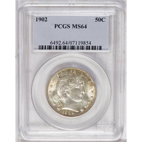 <B>1902<50C> MS64 PCGS.</B></I> Russet-olive toning surrounds the brilliant centers. Highly lustrous and solidly struck with scattered contact marks that limit the grade.