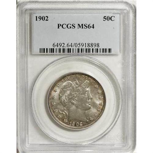 <B>1902 50C MS64 PCGS.</B></I> This mid-date Barber half offers pleasing luster and strong visual appeal for the grade. Rose, blue, and gold toning graces the obverse margins, and the surfaces are silver-gray otherwise. Pleasingly detailed with a few grade-defining ticks on the portrait.<BR><BR><B>Coin Engraver:</B> Charles E. Barber<BR><BR><b>Shipping:</b> Coins & Currency (<a target="_blank" href="http://www.heritageauctions.com/common/shipping.php">view shipping information</a>)