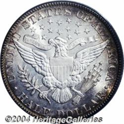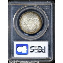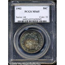 <B>1902<50C> MS65 PCGS.</B></I> Quite lustrous with a colorful array of cobalt-blue and russet toning on the obverse that leaves only a small area of near-brilliance on Liberty's neck. Less flashy golden-orange color is limited to the reverse periphery. Gems of this issue are inexplicably scarce and few of those could compete with the eye appeal of this piece. Population: 10 in 65, 2 finer (7/04). <BR><BR><B>Important notice:</B> Heritage usually auctions material at the rate of 200-250 lots per hour. On some occasions eBay Live bid software or the Internet may not be able to keep up with the pace of the auction. We recommend placing a realistic absentee bid now as insurance to avoid disappointment. Occasionally the auctioneer may eliminate or reject an eBay Live bid, and the auctioneer may also reopen a lot after the close of the eBay live bidding (usually because we missed an audience bid), and may reject your bid even if it shows you as the winning bidder. By bidding via eBay Live, you agree that Heritage may award the lot to another bidder at its sole discretion under the circumstances described above or any other reasonable circumstances. Since eBay bids are not shown to us until we open the lot on the floor, we treat those bids just like floor bids. In most cases the floor responds before the eBay bid is presented to us, due to Internet lag time, so for consistency we have made it a policy that floor bids are always considered first over tie eBay live bids. Also please note that all Heritage lots purchased through eBay Live carry a 20% Buyer's Premium. Please make sure you read the Terms and Conditions before you bid. </span></font></tr></table></td></tr></table>