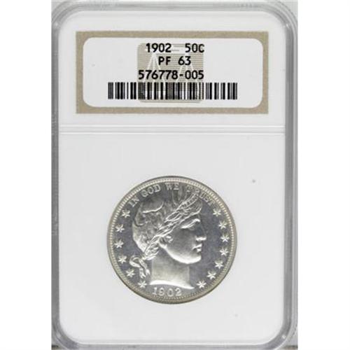 <B>1902 50C PR63 NGC.</B></I> Well defined and essentially brilliant, with little contrast between the fields and devices. Nice, watery reflectivity is observed on each side, and there are no contact marks to limit the grade. <BR><I>From The Vanek Collection.</B></I><BR><BR><b>Shipping:</b> Coins & Currency (<a target="_blank" href="http://www.heritageauctions.com/common/shipping.php">view shipping information</a>)