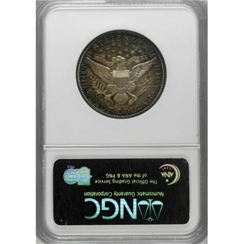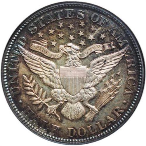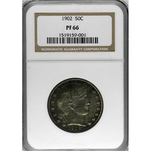 <B>1902 50C PR66 NGC.</B></I> This moderately toned Premium Gem proof, one of 777 pieces coined, offers mostly golden-brown and iridescent toning on each side, lighter at the centers. Unlike most examples of this date, this piece actually displays light cameo contrast beneath the toning. It has a sharp strike and excellent eye appeal. Census: 26 in 66, 17 finer (6/07).<BR><BR><B>Coin Engraver:</B> Charles E. Barber<BR><BR><b>Shipping:</b> Coins & Currency (<a target="_blank" href="http://www.heritageauctions.com/common/shipping.php">view shipping information</a>\)