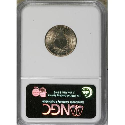<B>1902 5C MS64 NGC.</B></I> NGC Census: (214/179). PCGS Population (276/205). Mintage: 31,489,580. Numismedia Wsl. Price for NGC/PCGS coin in MS64: $192. (#3863)<BR><BR><B>Coin Engraver:</B> Charles E. Barber<BR><BR><b>Shipping:</b> Coins & Currency (<a target="_blank" href="http://www.heritageauctions.com/common/shipping.php">view shipping information</a>)