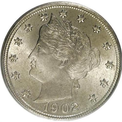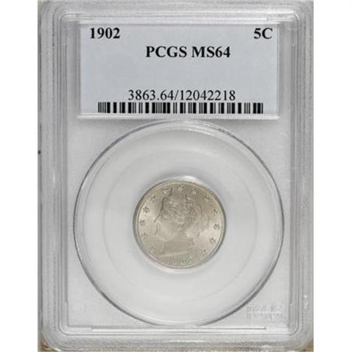 <B>1902 5C MS64 PCGS.</B></I> PCGS Population (272/197). NGC Census: (212/180). Mintage: 31,489,580. Numismedia Wsl. Price for NGC/PCGS coin in MS64: $192. (#3863)<BR><BR><B>Coin Engraver:</B> Charles E. Barber<BR><BR><b>Shipping:</b> Coins & Currency (<a target="_blank" href="http://www.heritageauctions.com/common/shipping.php">view shipping information</a>)