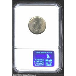 1902 5C MS65 NGC. Perfect for Gem quality type purposes, the surfaces are smooth from rim to rim. The otherwise light, tan tinged iridescence deepens in a bisecting streak over the back of Liberty's portrait.From the Ronald Bozarth Collection. Important notice: We expect to be auctioning lots at the rate of 200-250 per hour. Sometimes eBay Premier live bid software cannot keep up with that pace, so we strongly recommend that you place a realistic proxy bid now as insurance to avoid disappointment. Also please note that all Heritage/CAA lots purchased through eBay Premier carry a 20% Buyer's Premium. Please make sure you read the Terms and Conditions.