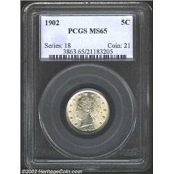 1902 5C MS65 PCGS. Brilliant throughout and highly lustrous with sparkling mint luster. Important no