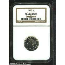 <TABLE cellSpacing=0 cellPadding=0 width="100%" bgColor=#000000 border=0><TBODY><TR><TD width="100%"><TABLE cellSpacing=1 cellPadding=3 width="100%" border=0><TBODY><TR><TD width="100%" bgColor=#79735c><FONT face=arial color=#ffffff size=3><B>Description</B> </FONT></TD></TR><TR><TD width="100%" bgColor=#ffffff><FONT face=arial size=2><B>1902 5C PR64 Cameo NGC.</B></I> Razor-sharp striking details are revealed throughout, on flashy, highly reflective surfaces. A single wispy pinscratch, near the reverse center, seemingly prevents the Gem designation. A gorgeous specimen nonetheless.<BR><I>From The Jones Beach Estate, Part I.</B></I> </FONT></TD></TR></TBODY></TABLE></TD></TR></TBODY></TABLE><BR><A name=PricesRealized></A><TABLE cellSpacing=0 cellPadding=0 width="100%" bgColor=#000000 border=0><TBODY><TR><TD width="100%"><TABLE cellSpacing=1 cellPadding=3 width="100%" border=0><TBODY><TR><TD width="100%" bgColor=#79735c><A name=PR><FONT face=arial color=#ffffff size=3><B>Previous Prices from Heritage Auctions</B> </FONT></A></TD></TR><TR><TD bgColor=#f6f6ed><TABLE cellSpacing=0 cellPadding=0 width="100%" border=1><TBODY><TR><TD align=middle width="33%"><B>Date</B></TD><TD align=middle width="33%"><B>Service</B></TD><TD align=middle width="33%"><B>Price</B></TD></TR><TR bgColor=whitesmoke><TD width="33%"><B>06/02/2003</B></TD><TD width="33%">PCGS</TD><TD width="33%">$402.50</TD></TR></TBODY></TABLE></TD></TR><TR><TD bgColor=#ffffff><FONT face=arial size=1 ?>PLEASE NOTE: All prices realized reflect the final hammer price PLUS the buyer's premium in auctions that charge a buyer's premium. Each item has a notation at the top of the listing indicating whether that lot included a buyer's premium. Example: A item that sells with a final hammer price of $100 and a 20% buyer's premium will display with a price realized of $120. All information listed is intended to be as accurate as possible, but errors are possible. Please use this guide carefully and inform us of any inaccuracies. </FONT></TD></TR></TBODY></TABLE></TD></TR></TBODY></TABLE><BR><TABLE cellSpacing=0 cellPadding=0 width="100%" bgColor=#000000 border=0><TBODY><TR><TD width="100%"><TABLE cellSpacing=1 cellPadding=3 width="100%" border=0><TBODY><TR><TD width="100%" bgColor=#79735c colSpan=6><FONT face=arial color=#ffffff size=3><B>Price Guide*</B> </FONT></TD></TR><TR bgColor=#f6f6ed><TD align=middle><B>Grade</B> </TD><TD align=middle><B>Coin World<BR>(Trends)</B> </TD><TD align=middle><B>Numismedia<BR>Retail</B> </TD><TD align=middle><B>Numismedia<BR>Wholesale</B> </TD><TD align=middle><B>Coin<BR>Universe</B> </TD><TD align=middle><B>Heritage<BR>Value Index</B> </TD></TR><TR bgColor=#ffffff><TD align=middle>63</TD><TD align=right>---</TD><TD align=right>---</TD><TD align=right>---</TD><TD align=right>---</TD><TD align=right>$121.50</TD></TR><TR style="FONT-WEIGHT: bold" bgColor=#cccfdd><TD align=middle>64</TD><TD align=right>---</TD><TD align=right>---</TD><TD align=right>---</TD><TD align=right>---</TD><TD align=right>$286.75</TD></TR><TR bgColor=#ffffff><TD align=middle>65</TD><TD align=right>---</TD><TD align=right>---</TD><TD align=right>---</TD><TD align=right>---</TD><TD align=right>$315.00</TD></TR><TR bgColor=#ffffff><TD colSpan=6><FONT size=1>*All information listed is intended to be as accurate as possible, but errors are possible. No item may be returned or refused based on this information which is provided as a service to our customers. You should contact each pricing source directly to determine the accuracy of this information. </FONT></TD></TR></TBODY></TABLE></TD></TR></TBODY></TABLE><BR><TABLE cellSpacing=0 cellPadding=0 width="100%" bgColor=#000000 border=0><TBODY><TR><TD width="100%"><TABLE cellSpacing=1 cellPadding=3 width="100%" border=0><TBODY><TR><TD width="100%" bgColor=#79735c><FONT face=arial color=#ffffff size=3><B>Population Guide</B> </FONT></TD></TR><TR bgColor=#ffffff><TD align=middle><!-- Begin Output of Population Grid--><TABLE cellSpacing=0 cellPadding=0 width="100%" border=0><TBODY><TR><TD vAlign=center><TABLE cellSpacing=0 width="100%" border=1 cellsadding="3"><TBODY><TR><TD vAlign=center><TABLE cellSpacing=0 cellPadding=3 width="100%" border=1><TBODY><TR><TD vAlign=center align=middle bgColor=#f0f1e8 colSpan=2 <CENTER><FONT face=Arial size=2><B>PCGS Pop </B></FONT><CENTER></CENTER></TD><TD vAlign=center align=middle bgColor=#f0f1e8 colSpan=2><CENTER><FONT face=Arial size=2><B>NGC Pop</B></CENTER></FONT></TD></TR><TR><TD vAlign=center><FONT face=Arial size=2>(64)</FONT> </TD><TD vAlign=center align=right><FONT face=Arial size=2>2</FONT> </TD><TD vAlign=center><FONT face=Arial size=2>(64)</FONT> </TD><TD vAlign=center align=right><FONT face=Arial size=2>0</FONT> </TD></TR><TR><TD vAlign=center><FONT face=Arial size=2>(>64)</FONT> </TD><TD vAlign=center align=right><FONT face=Arial size=2>0</FONT> </TD><TD vAlign=center><FONT face=Arial size=2>(>64)</FONT> </TD><TD vAlign=center align=right><FONT face=Arial size=2>0</FONT> </TD></TR></TBODY></TABLE></TD></TR></TBODY></TABLE></TD></TR></TBODY></TABLE><!-- End Output of Population Grid--> Important notice: Heritage usually auctions material at the rate of 200-250 lots per hour. On some occasions eBay Live bid software or the Internet may not be able to keep up with the pace of the auction. We recommend placing a realistic absentee bid now as insurance to avoid disappointment. Occasionally the auctioneer may eliminate or reject an eBay Live bid, and the auctioneer may also reopen a lot after the close of the eBay live bidding (usually because we missed an audience bid), and may reject your bid even if it shows you as the winning bidder. By bidding via eBay Live, you agree that Heritage may award the lot to another bidder at its sole discretion under the circumstances described above or any other reasonable circumstances. Also please note that all Heritage lots purchased through eBay Live carry a 20% Buyer's Premium. Please make sure you read the Terms a