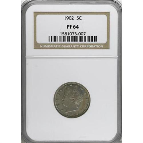 <B>1902 5C PR64 NGC.</B></I> NGC Census: (126/219). PCGS Population (168/181). Mintage: 2,018. Numismedia Wsl. Price for NGC/PCGS coin in PR64: $284. (#3900)<BR><BR><B>Coin Engraver:</B> Charles E. Barber<BR><BR><b>Shipping:</b> Coins & Currency (<a target="_blank" href="http://www.heritageauctions.com/common/shipping.php">view shipping information</a>)