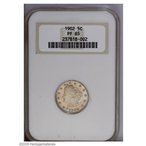 1902 5C PR65 NGC. Bright, beige-gold surfaces are acce 1902[5C] PR65 NGC.