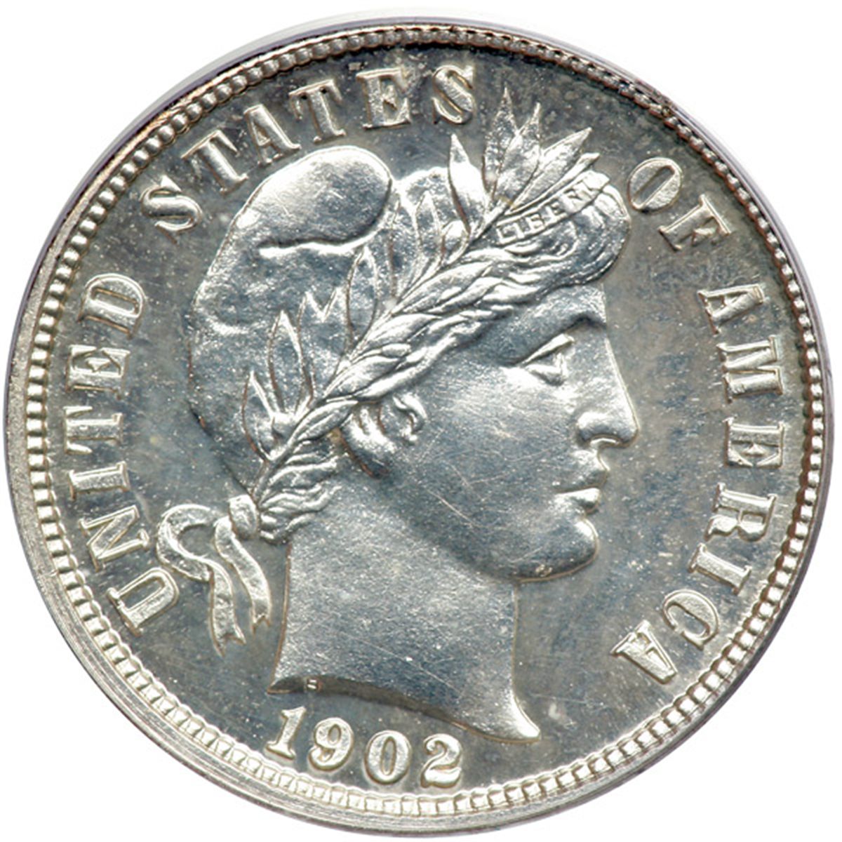 1902 Barber Dime. PCGS graded Proof 63. An untoned Brilliant Proof example, choice and well struck (PCGS # 4886) .
