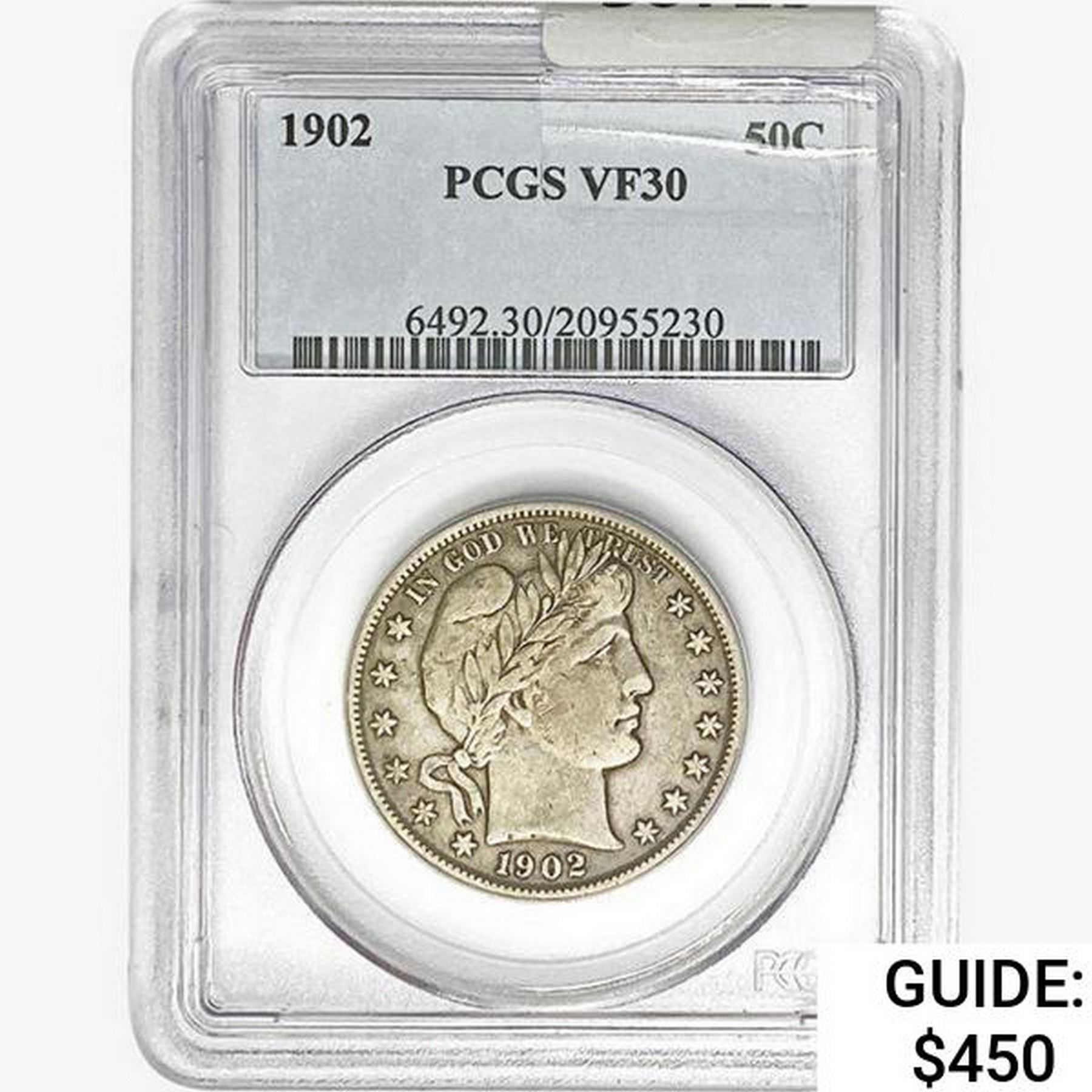 1902 Barber Half Dollar PCGS VF30