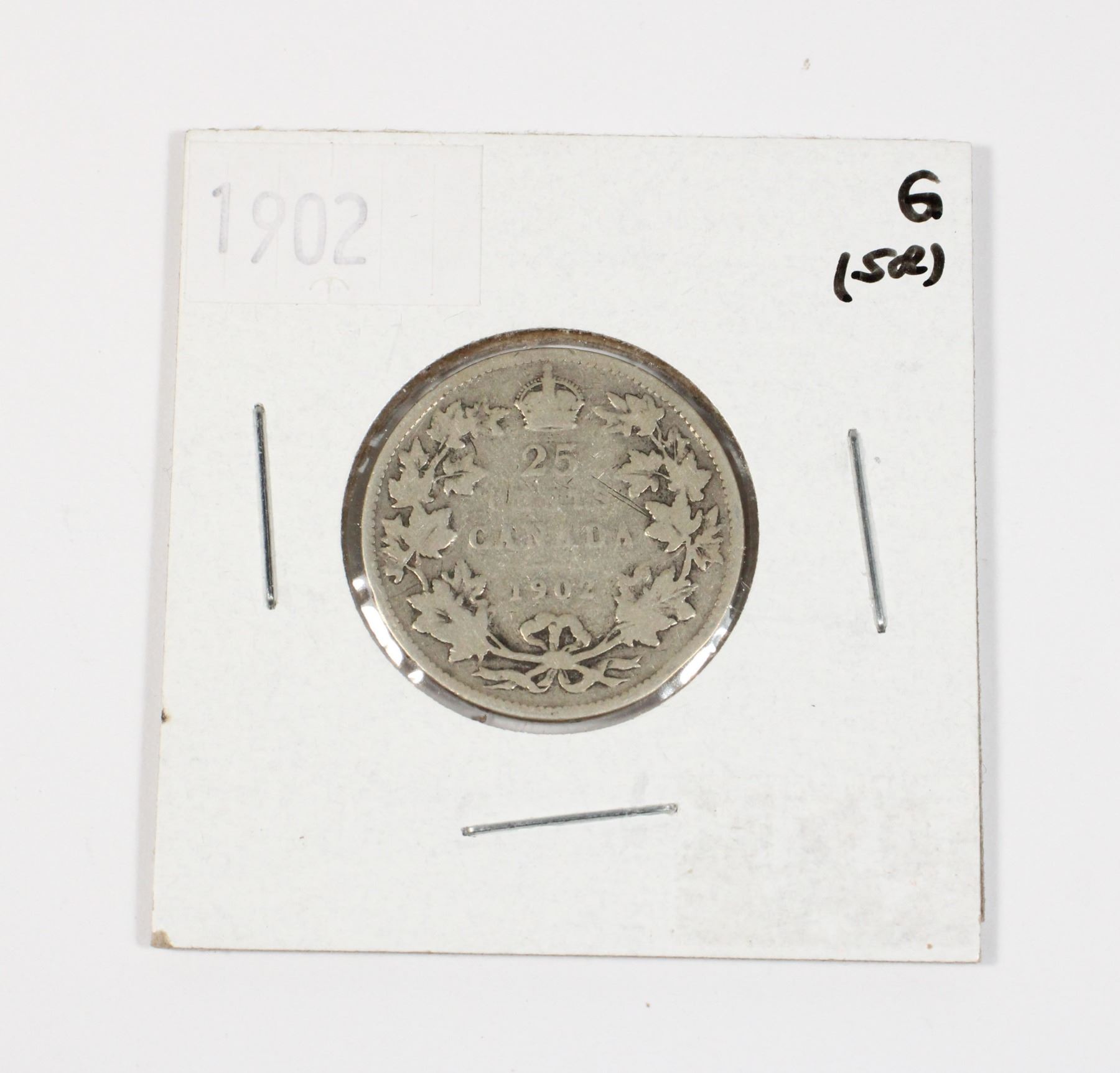 1902 CANADIAN SILVER QUARTER 92.5% SILVER