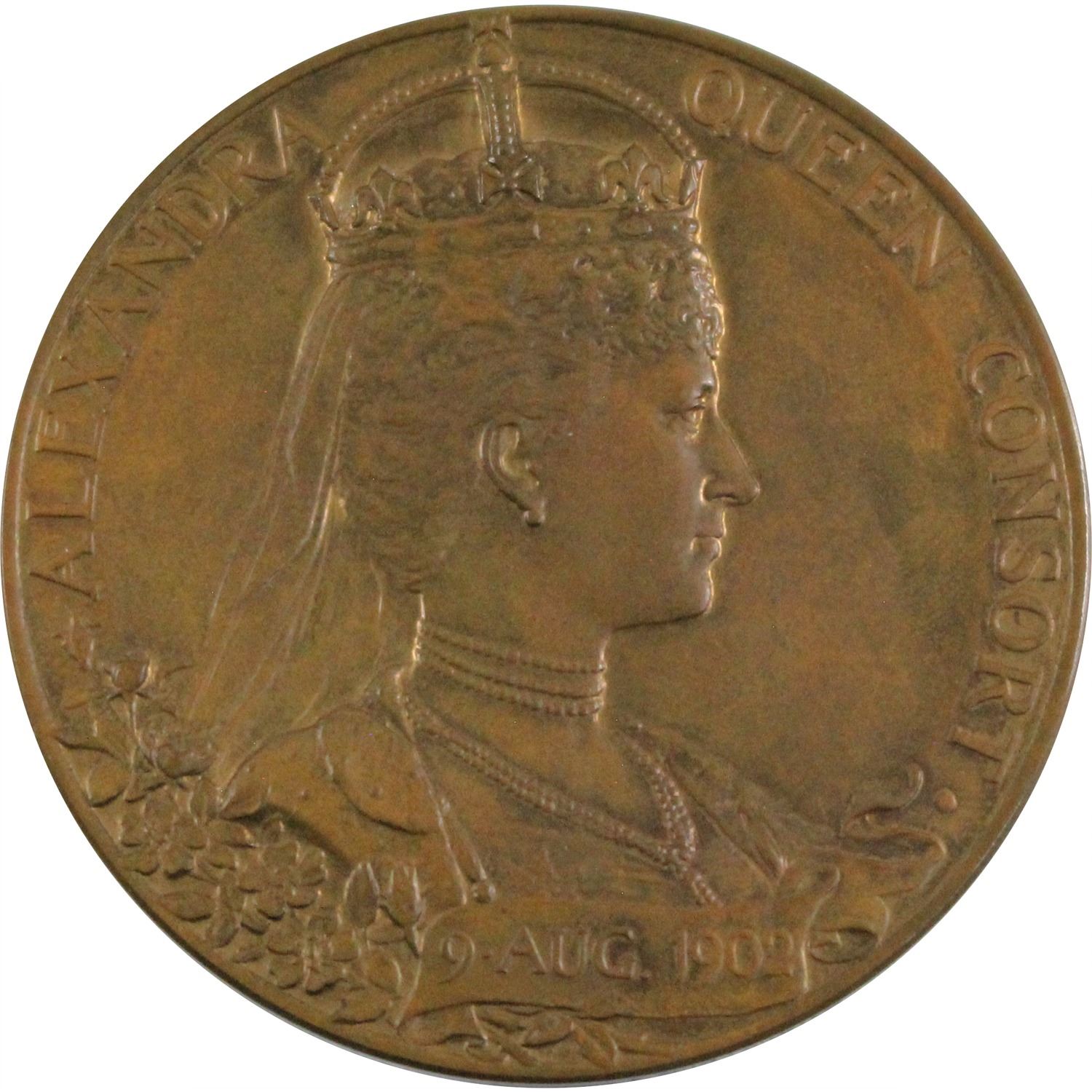 1902 Edward VII Coronation Medallion featuring Queen Alexandria on Reverse. Eimer # 1871a, 56mm Bronze. Comes in original Mint Box.