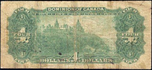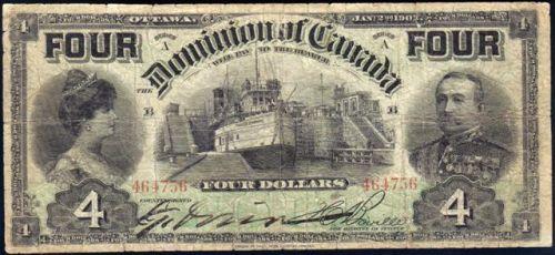 1902 Four Dollars Boville, FOURs at Top, DC-17b serial number 464756 B, VG with pinhole