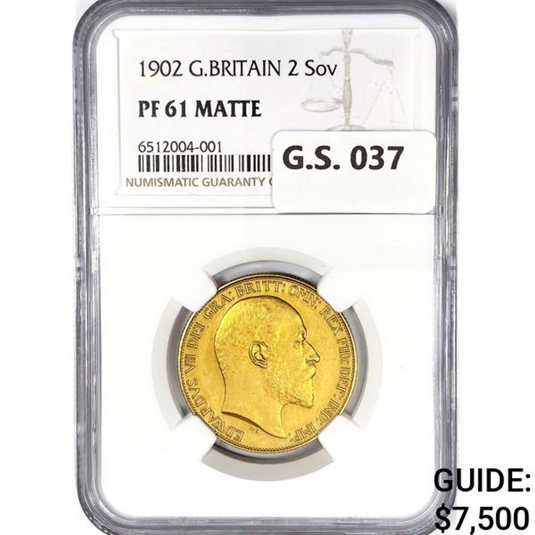 1902 G.B. .26oz Gold 2 Sovereign NGC PF61 Matte