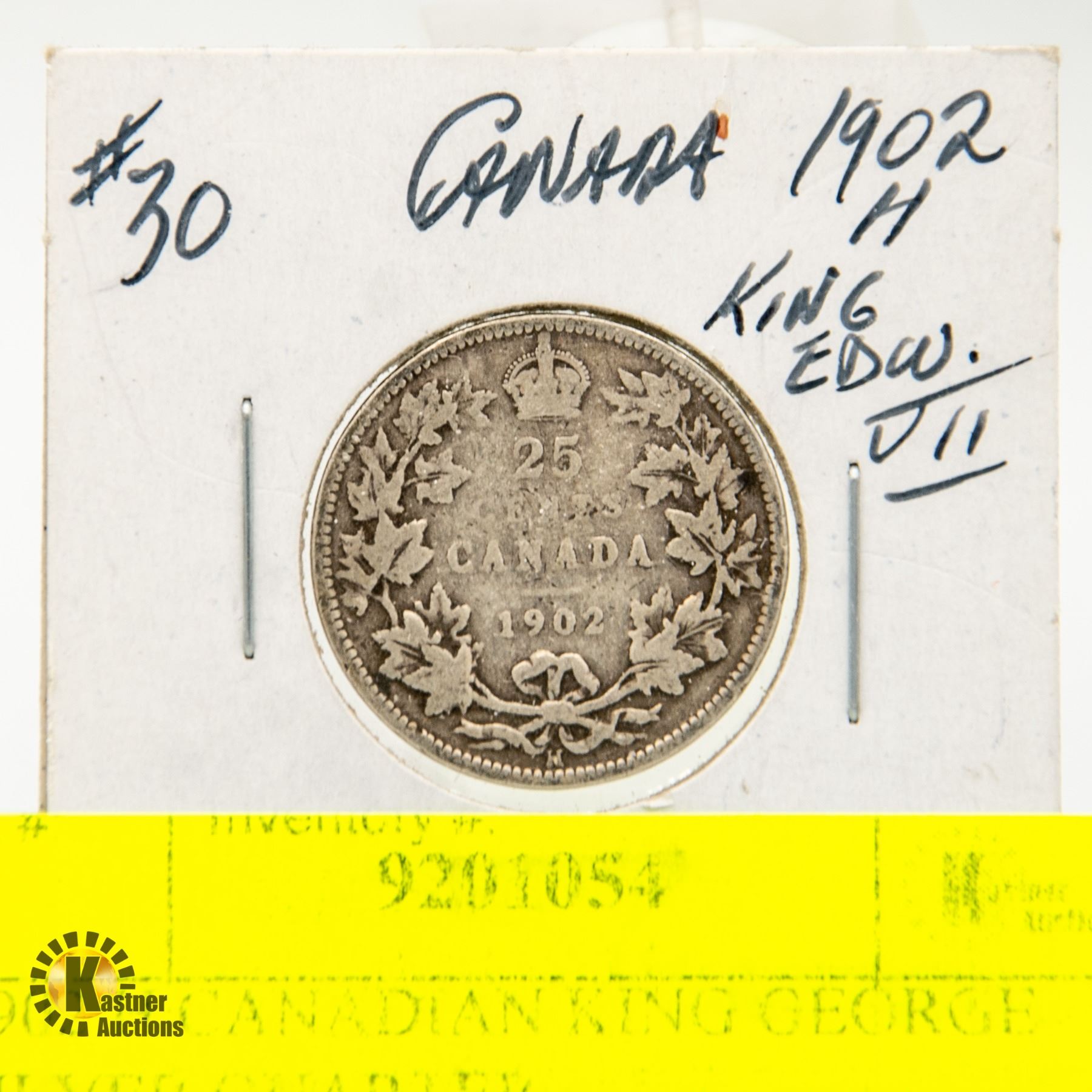 1902 H CANADIAN KING GEORGE SILVER QUARTER