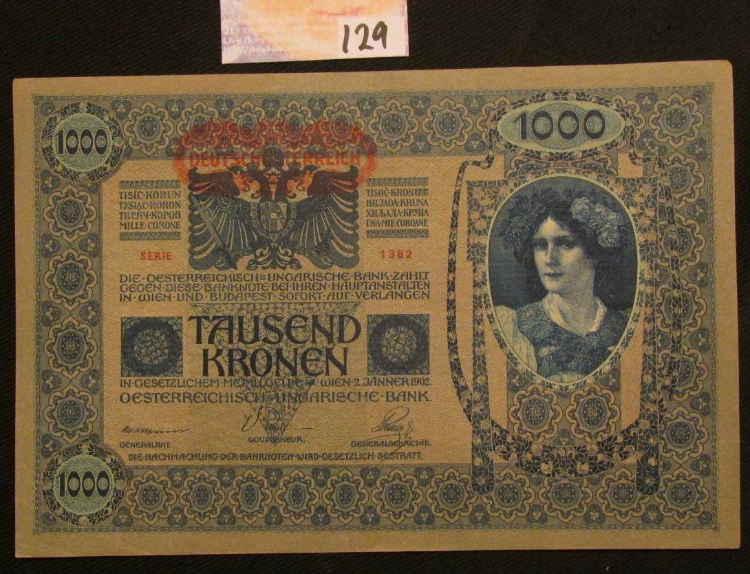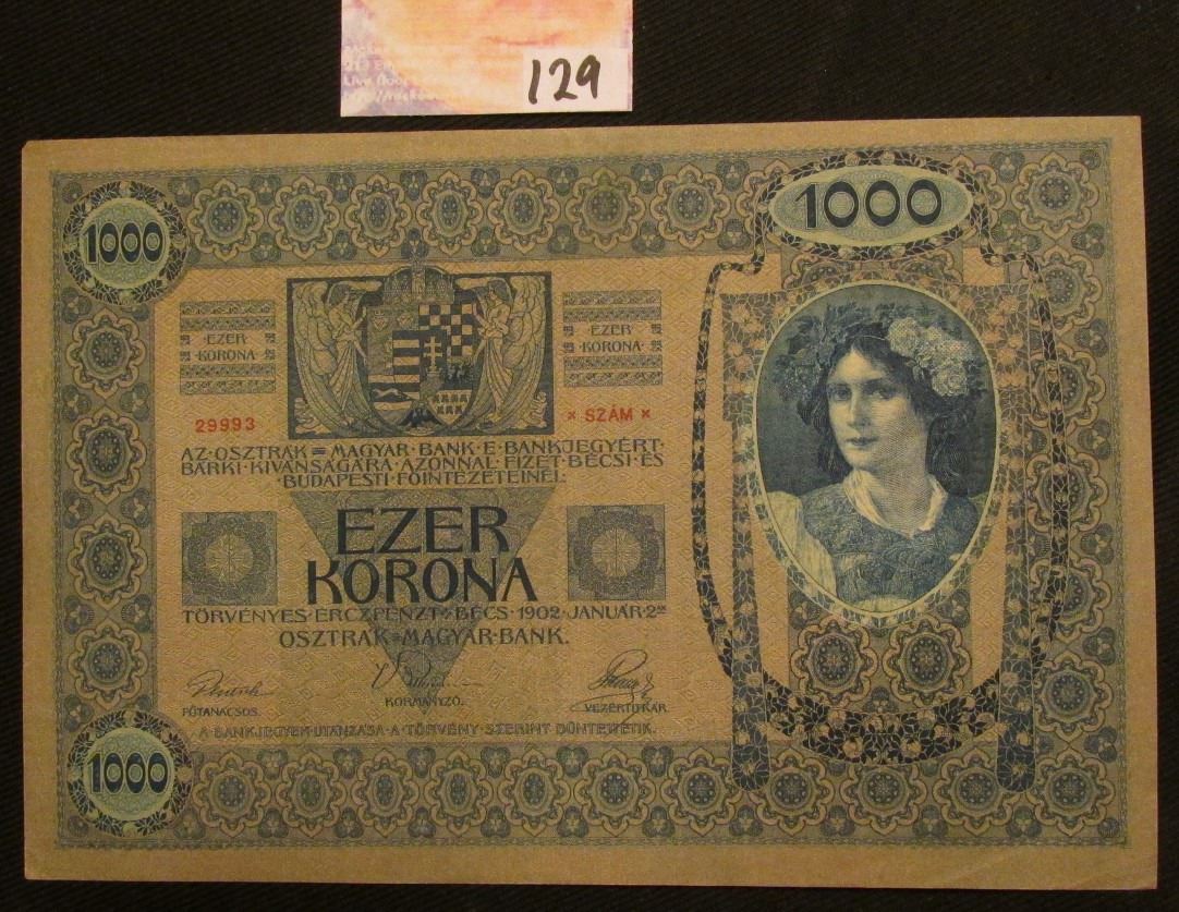 1902 Hungary 1000 Korona Bank note, Near CU.