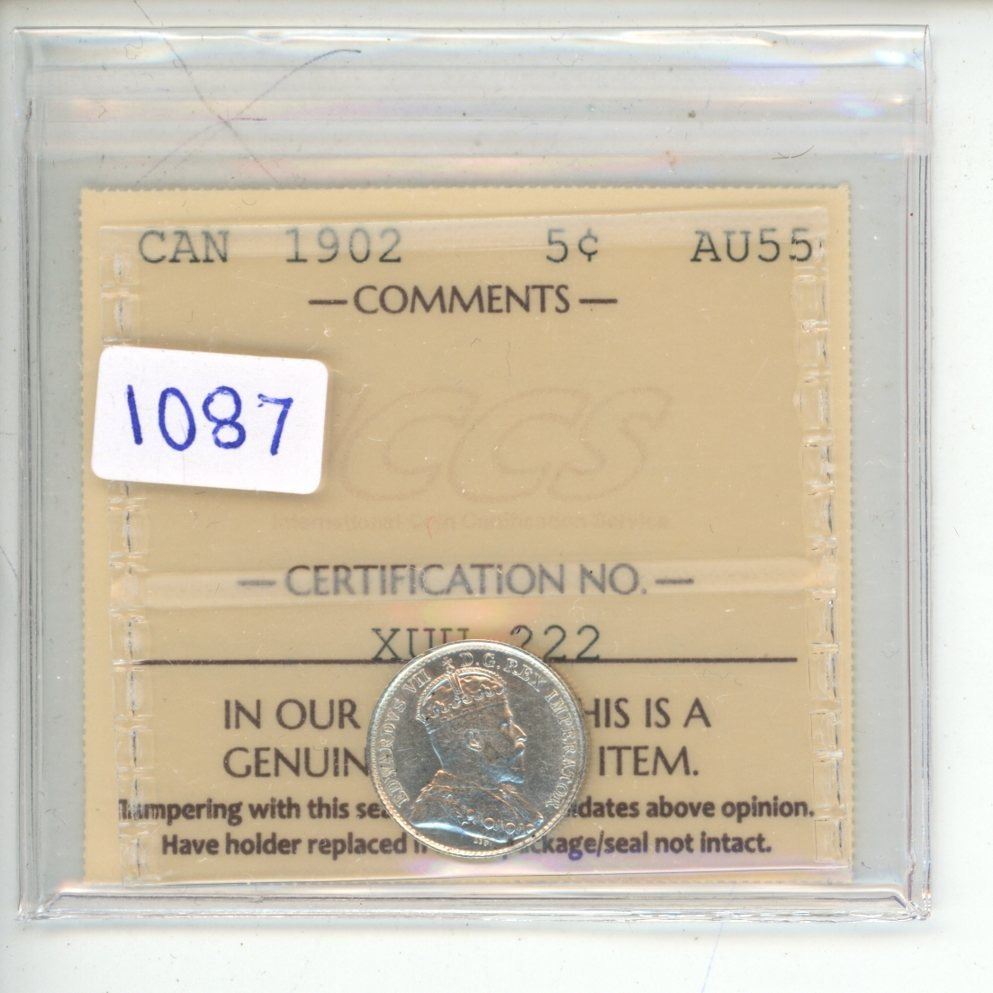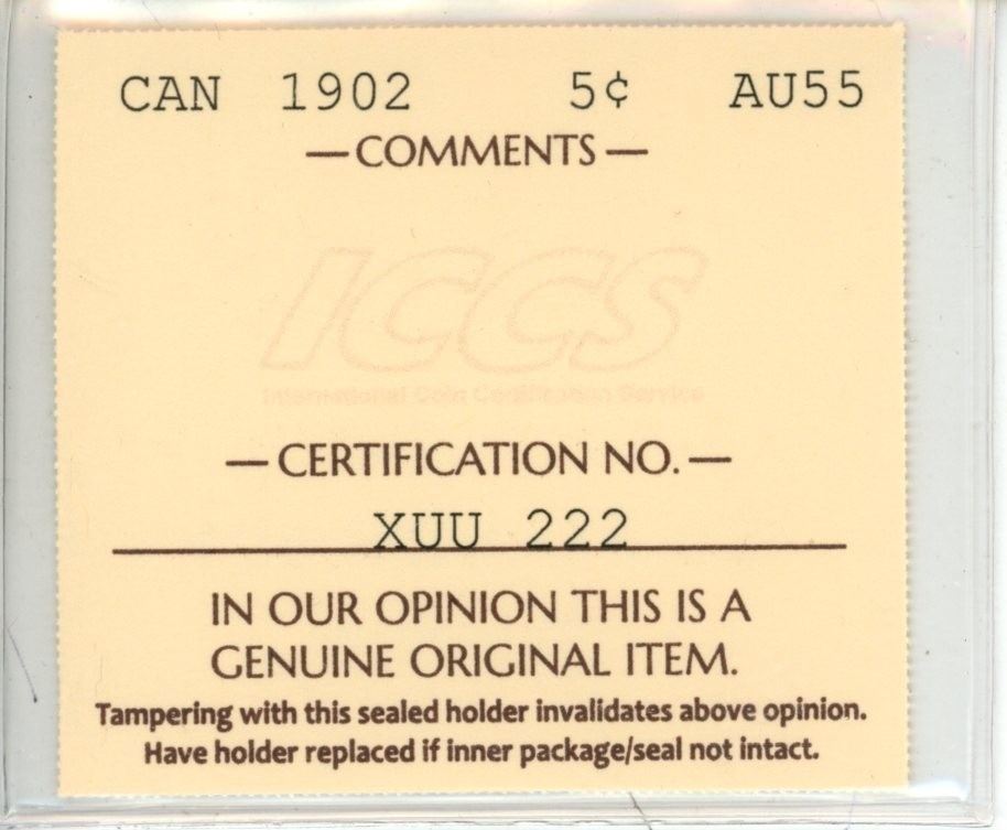1902 ICCS Graded - Canadian Five Cent - AU55