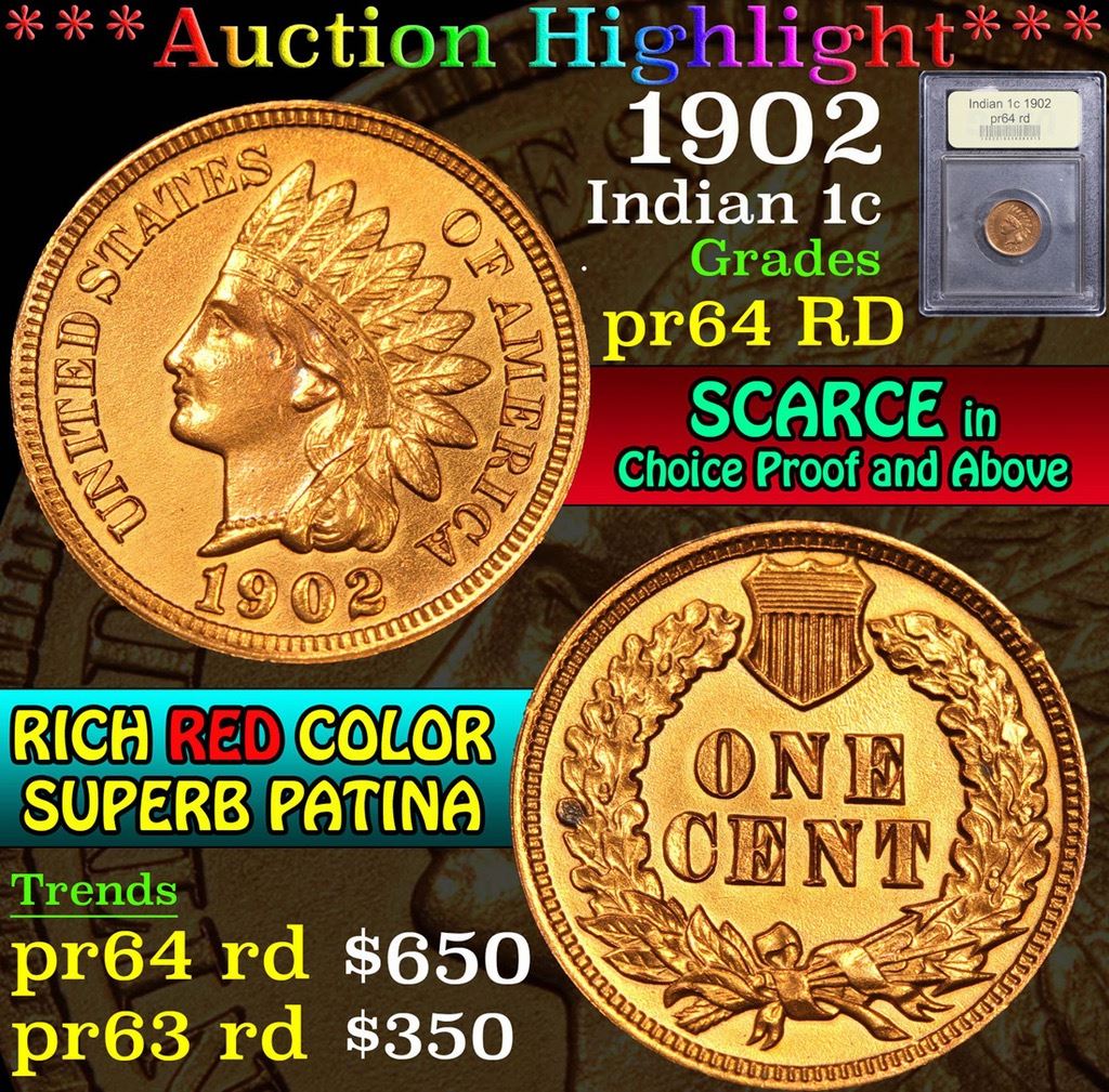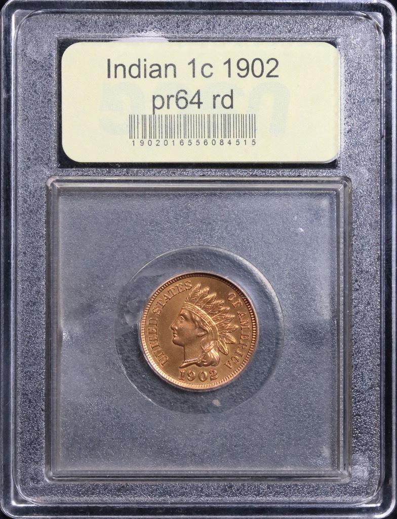 1902 . . Indian Cent 1c Graded Choice Proof Red By USCG.