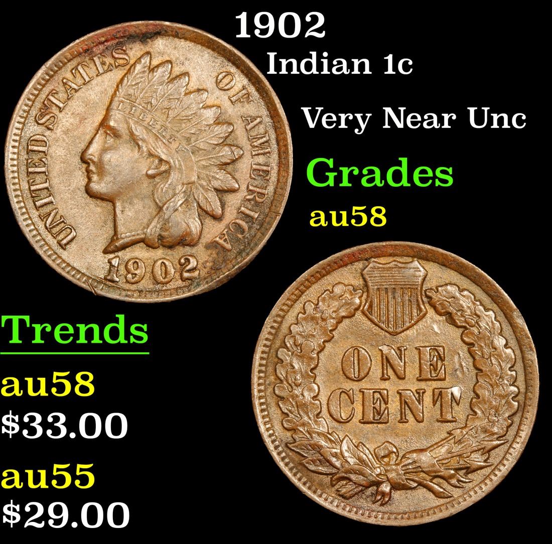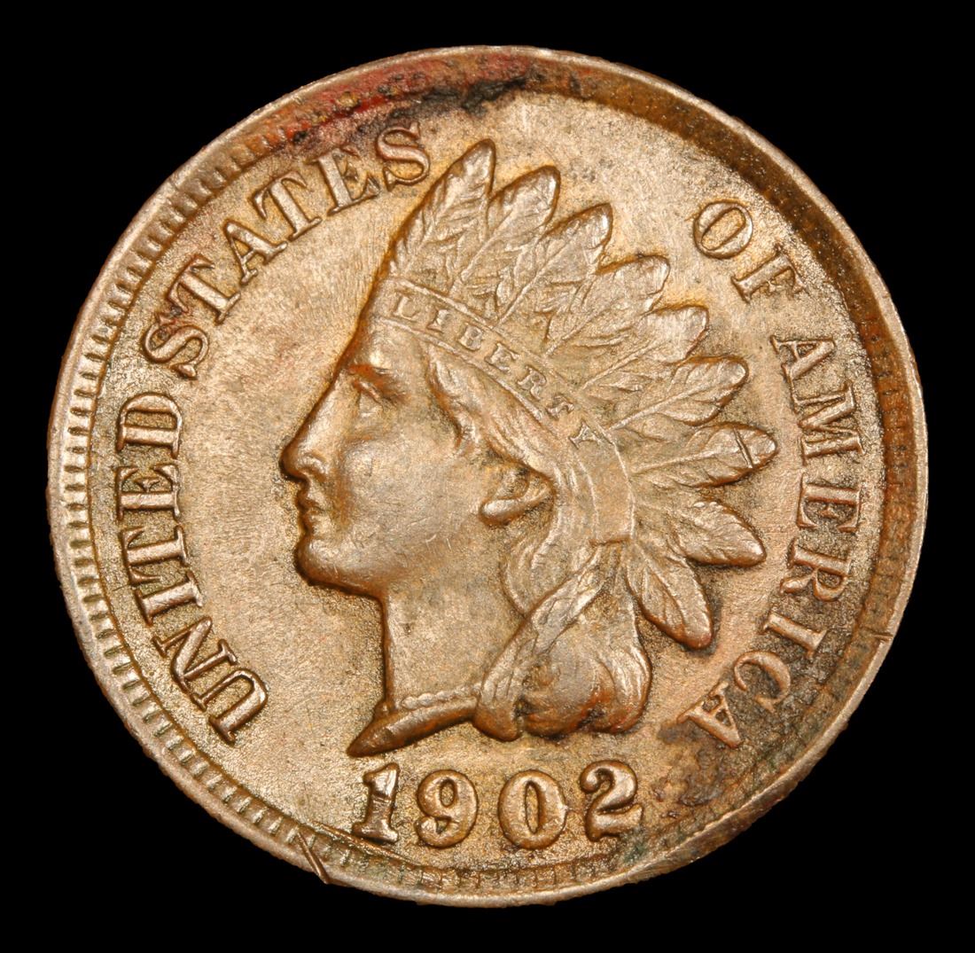 1902 . Very Near Unc Indian Cent 1c Grades Choice AU/BU Slider.