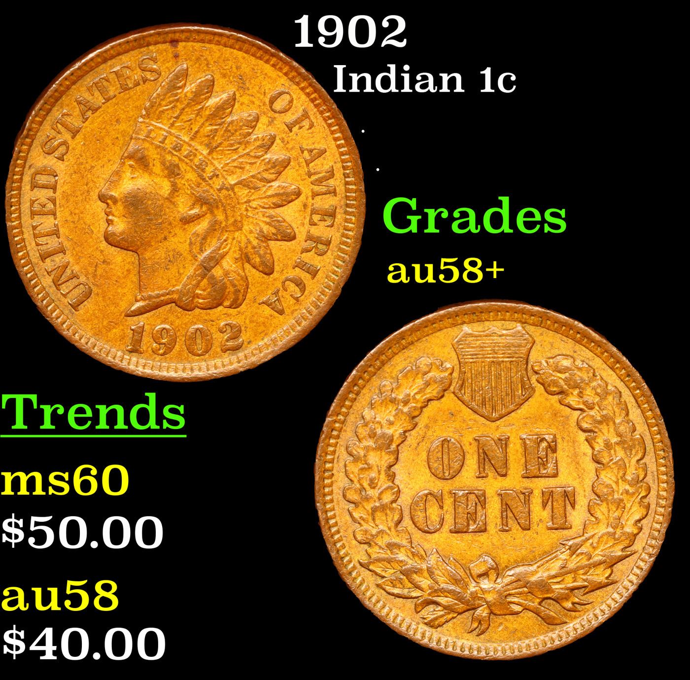 1902 Indian Cent 1c Grades Choice AU/BU Slider+.
