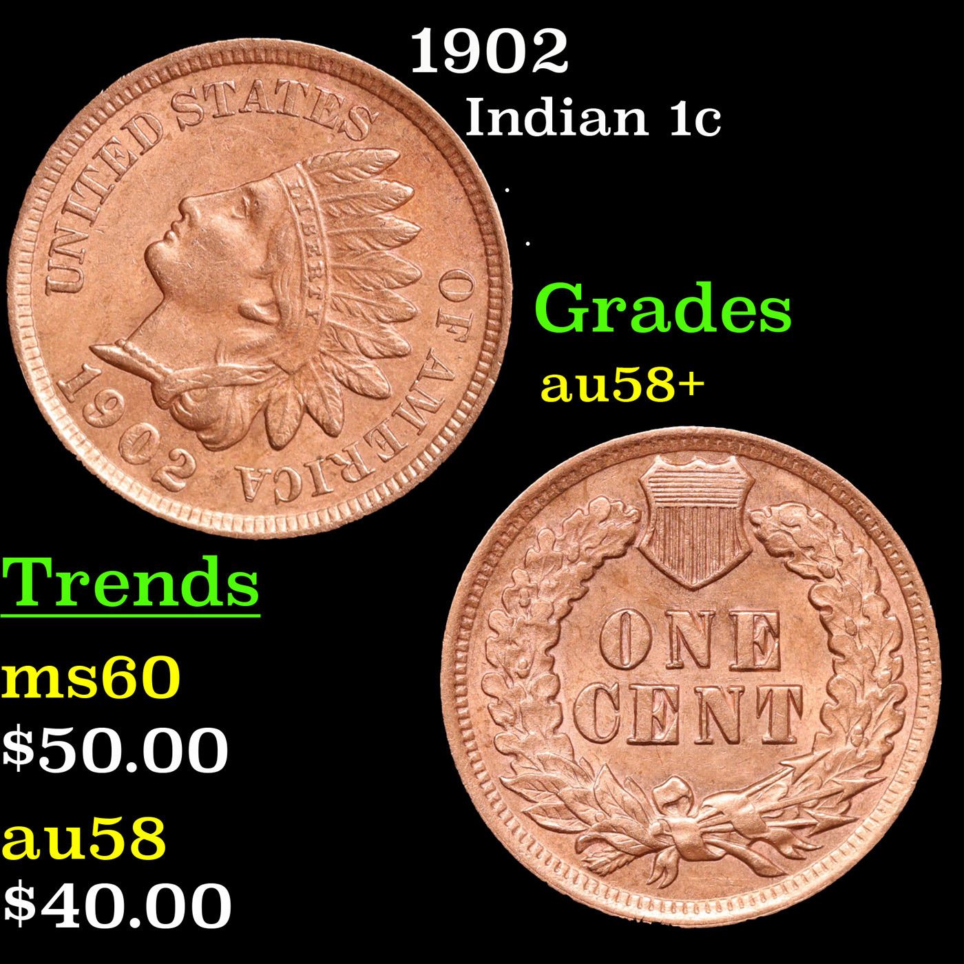 1902 Indian Cent 1c Grades Choice AU/BU Slider+.