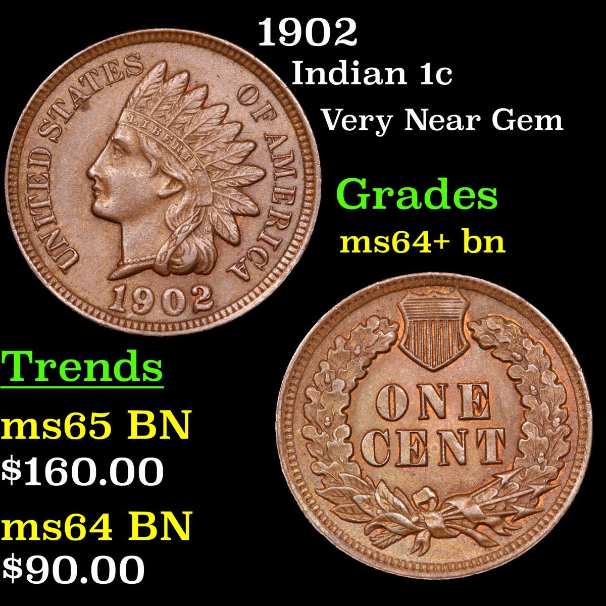 1902 . Very Near Gem Indian Cent 1c Grades Choice+ Unc BN.