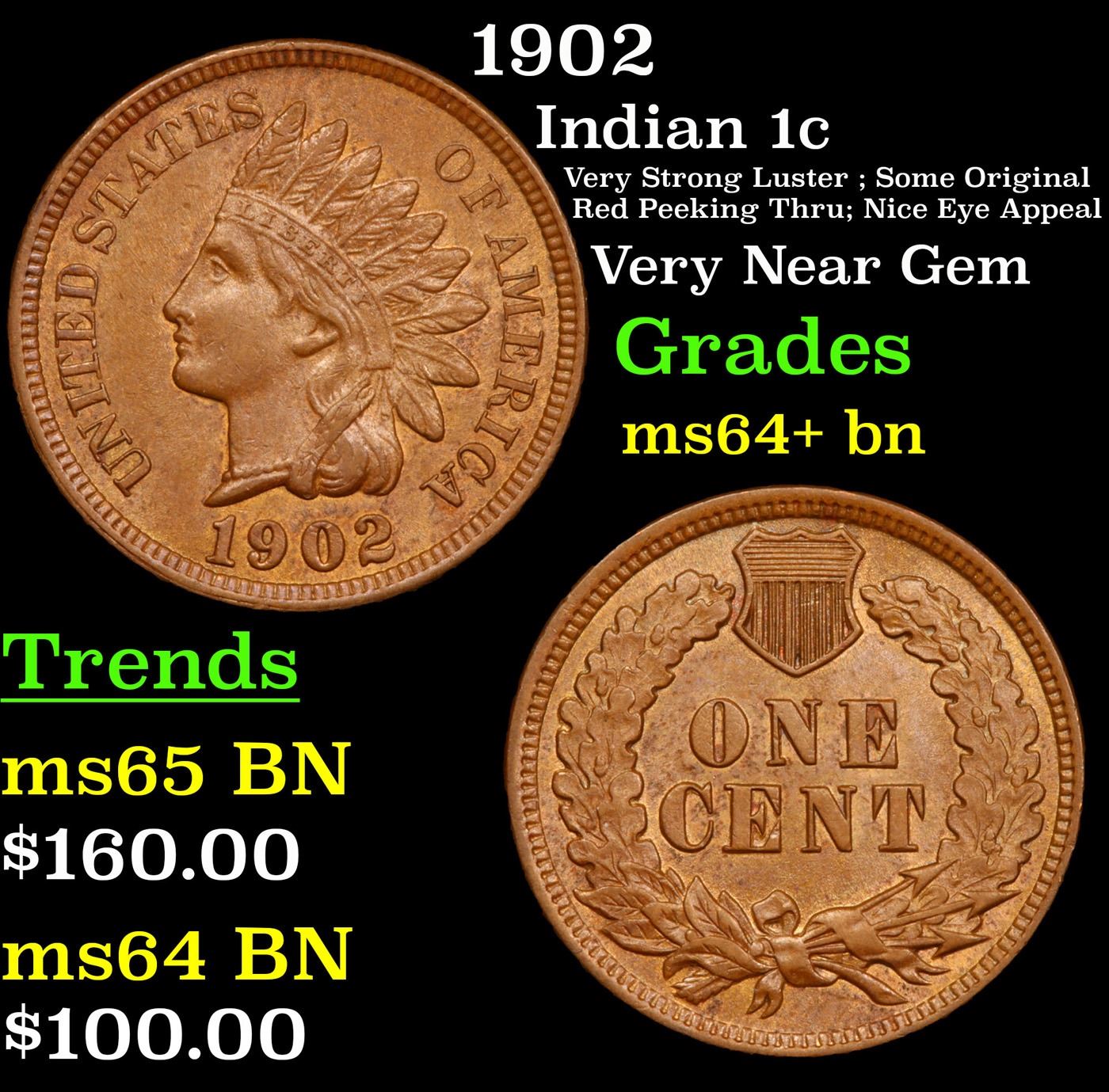 1902 Indian Cent 1c Grades Choice+ Unc BN.