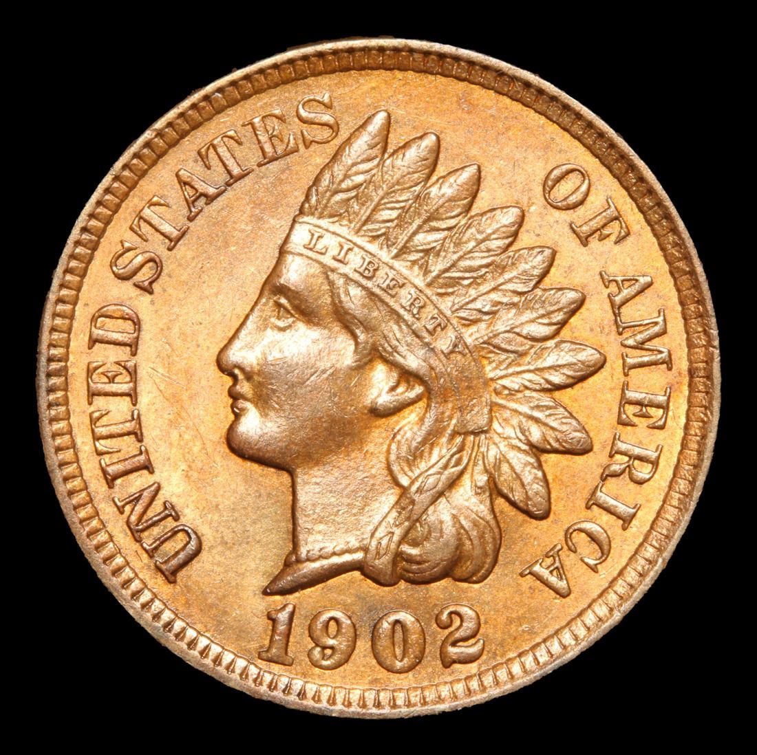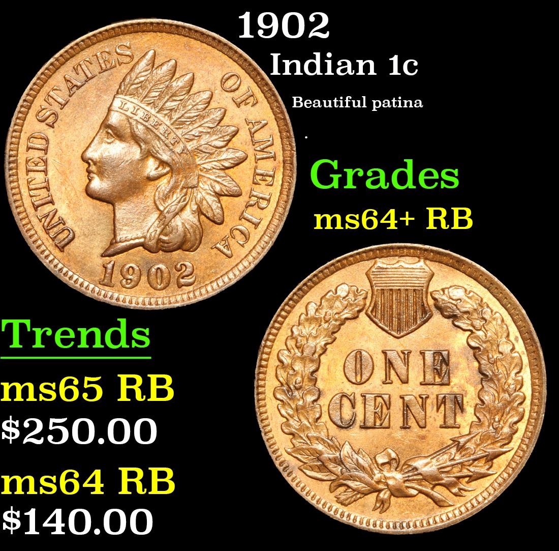 1902 Indian Cent 1c Grades Choice+ Unc RB. Beautiful patina