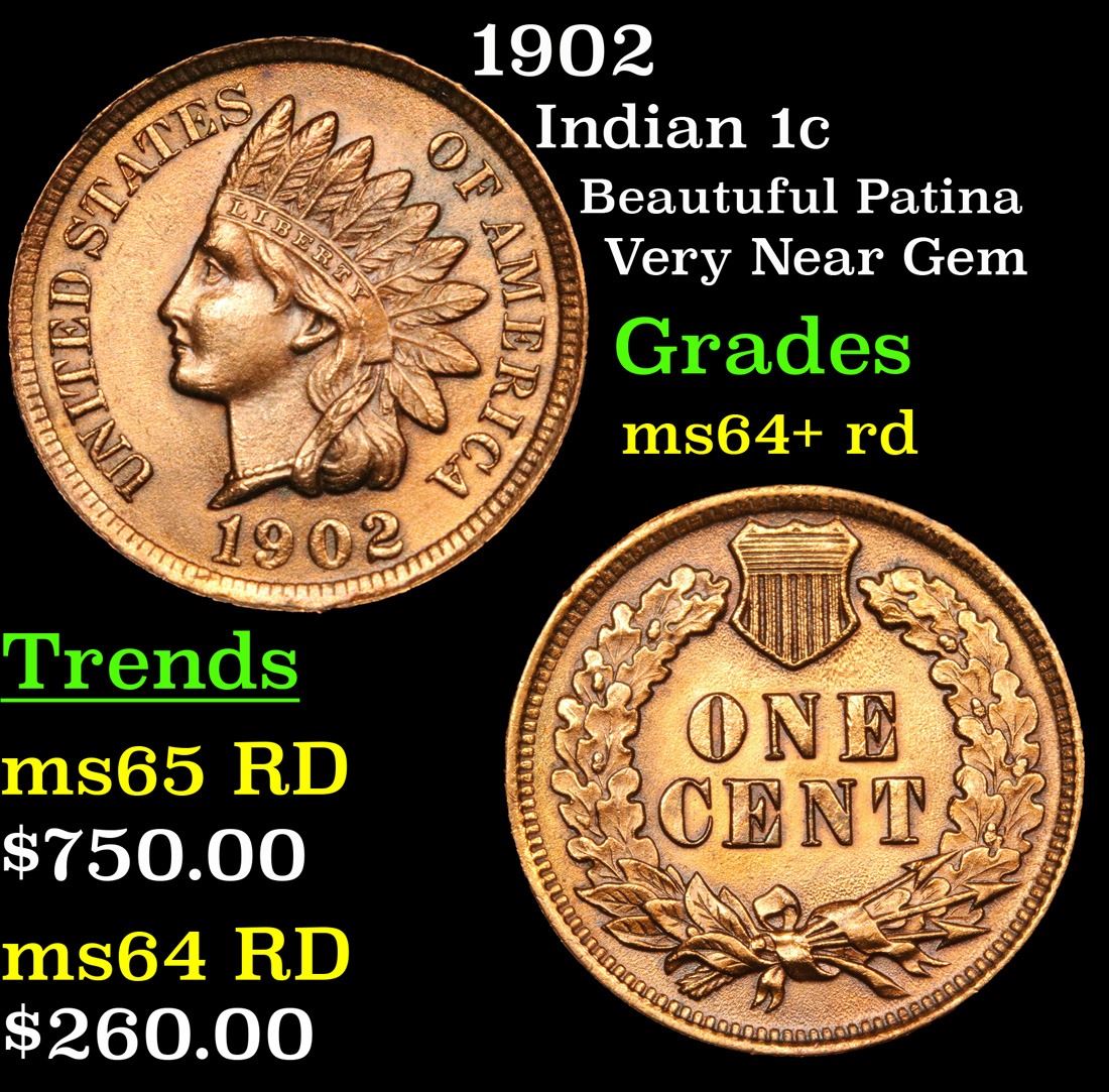 1902 Beautuful Patina Very Near Gem Indian Cent 1c Grades Choice+ Unc RD.