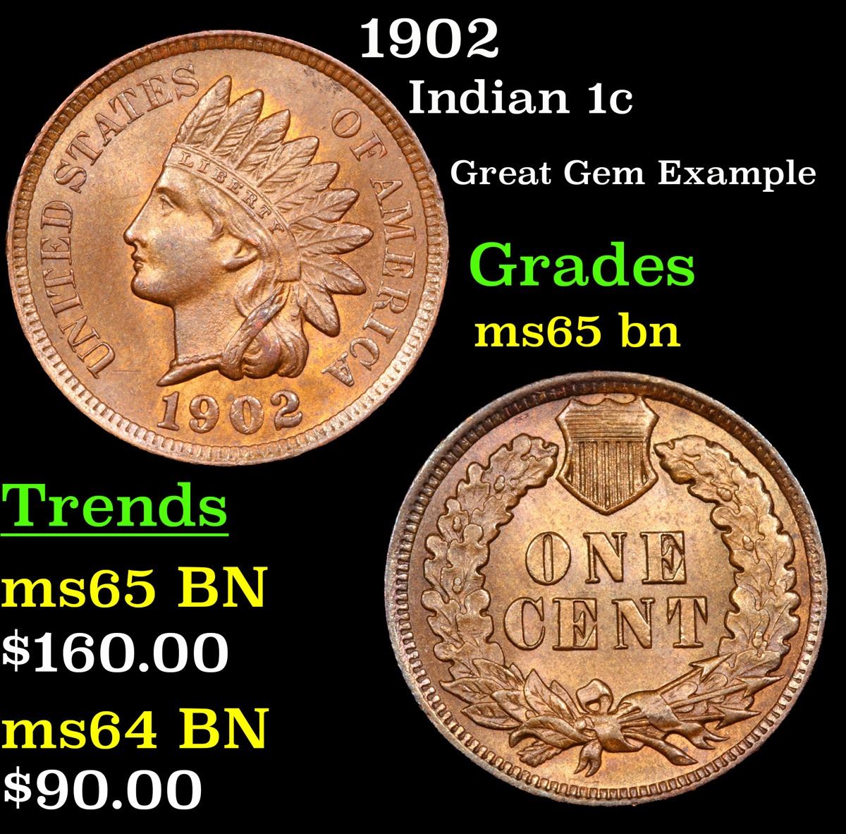 1902 . Great Gem Example Indian Cent 1c Grades GEM Unc BN.