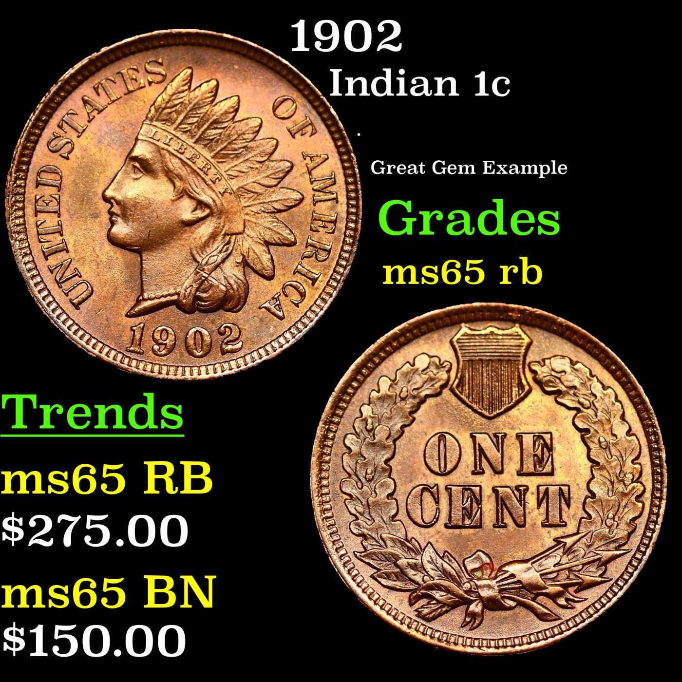 1902 Indian Cent 1c Grades GEM Unc RB.