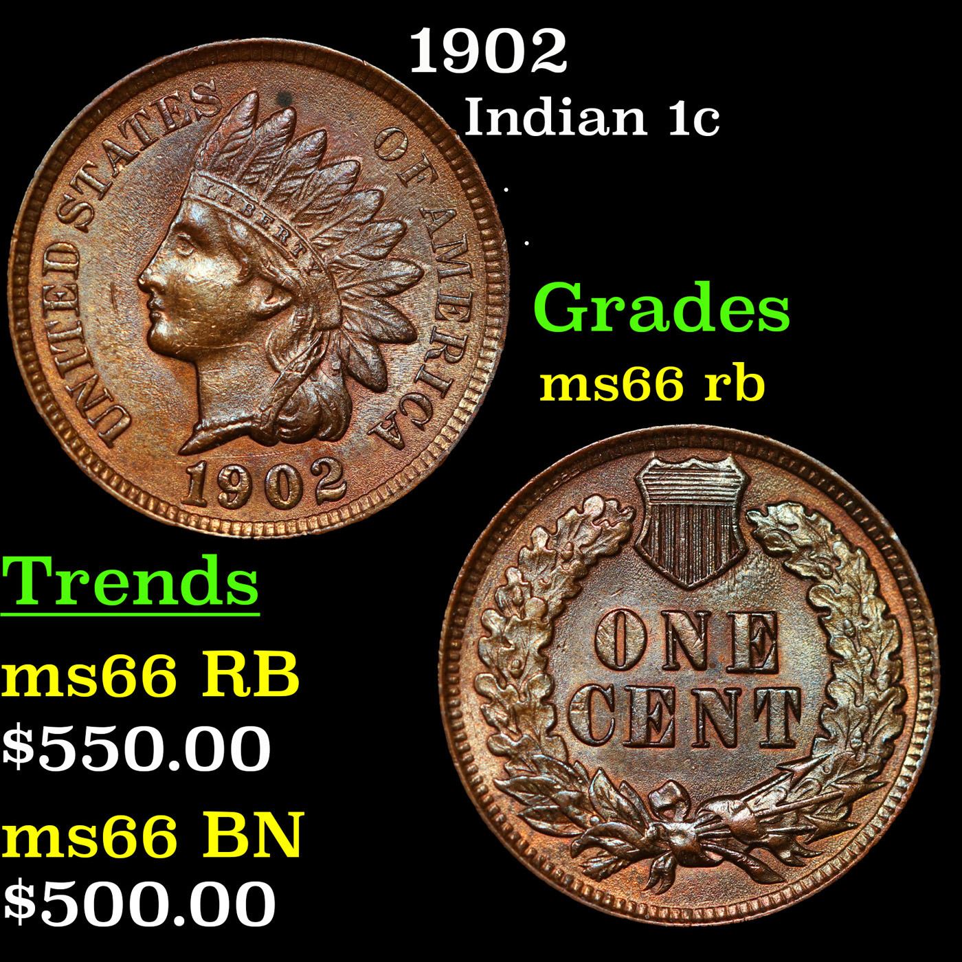 1902 Indian Cent 1c Grades GEM+ Unc RB.