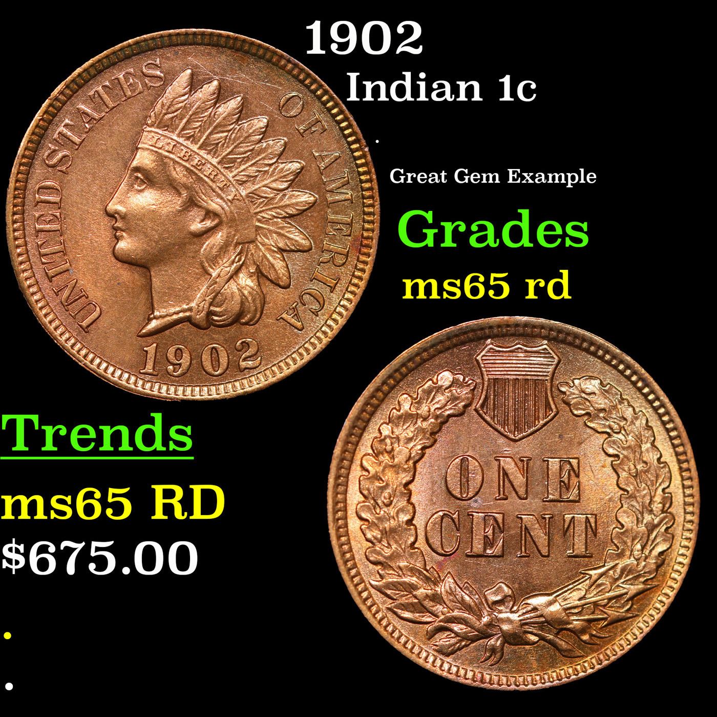 1902 Indian Cent 1c Grades GEM Unc RD.