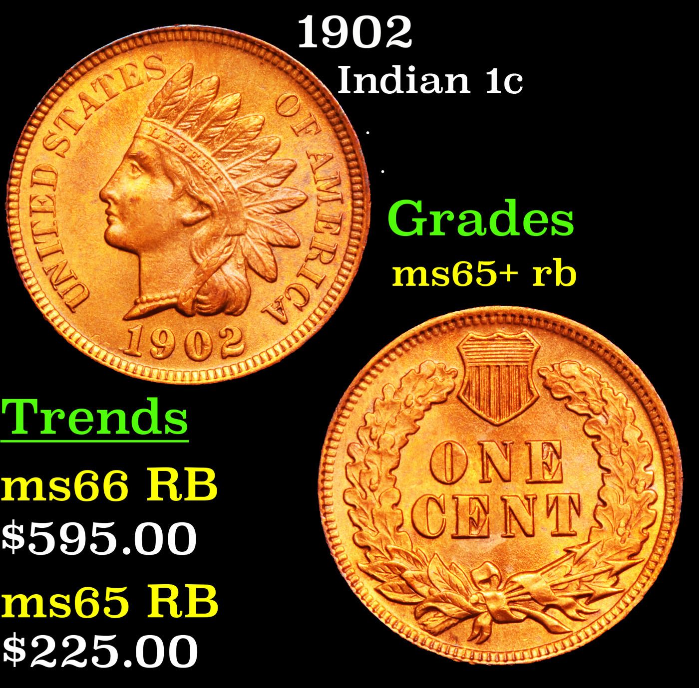 1902 Indian Cent 1c Grades Gem+ Unc RB.